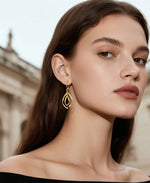 Double twist drop earrings feature elegant intertwined strands, adding a modern, sculptural touch to any outfit.
