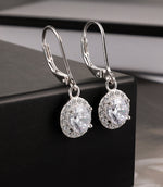 Round Halo Drop Dangle Earrings