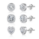ALEXCRAFT draws its energy from the drive and vitality of its customers. This earring set includes three different styles of square cubic zirconia studs: round, heart-shaped, and square designs. Each pair of studs is meticulously crafted, showcasing unique radiance and charm. Whether for daily wear or special occasions, these three styles each possess their own allure, adding captivating elegance to your look. By choosing this set, you'll have multiple options, perfectly complementing various styles and making your earrings more vibrant and diverse!