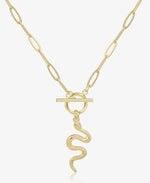Gold Snake Pendant Paperclip Chain Necklace