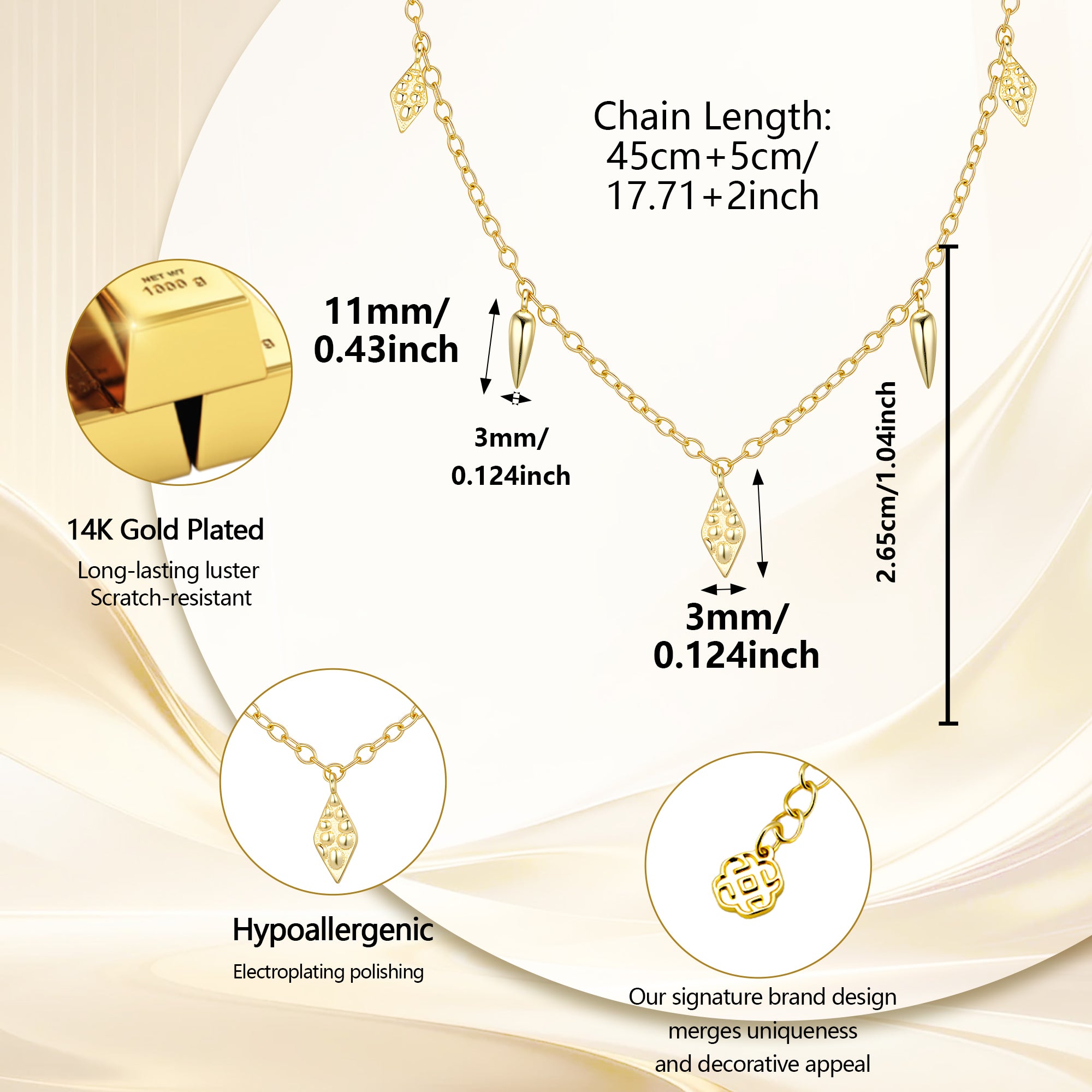 ● Necklace Length: 45cm + 5cm Extender (Adjustable)